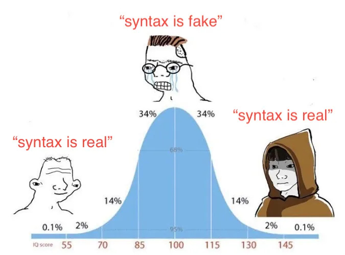 Linguistics grad student STM once told me that belief in syntax follows a bell curve: at first you think it’s real, and then you think it’s fake, and then you think it’s real again. I want to Believe In Syntax, and this blog is a way for me to make sure I really understand the motivations behind everything.